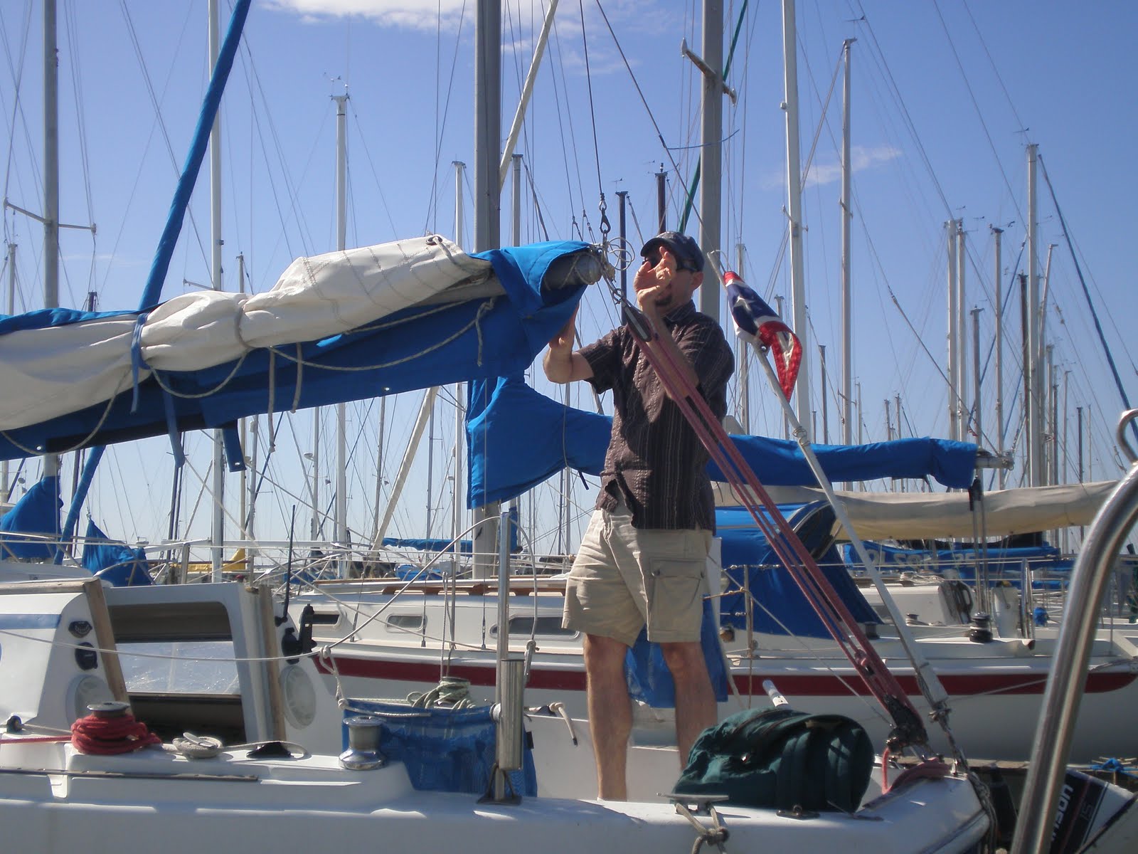 He looks like he was posing as Captain Morgan here but he actually wasn't. He was just concentrating on what he was doing. I had to take a picture because it seemed like a classic sailing pose.